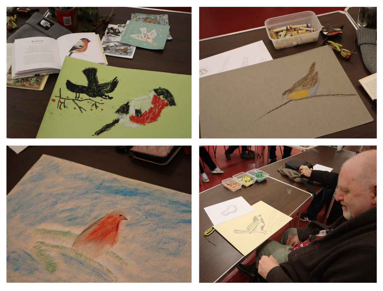 During my visit, an art facilitator led a relaxed creative session. Pencils and pastels were put to paper as people drew natural objects, including cheerful robins, chatting as they worked. The room was full of warmth, humour, and laughter. The art mattered, but what mattered more was just being together.