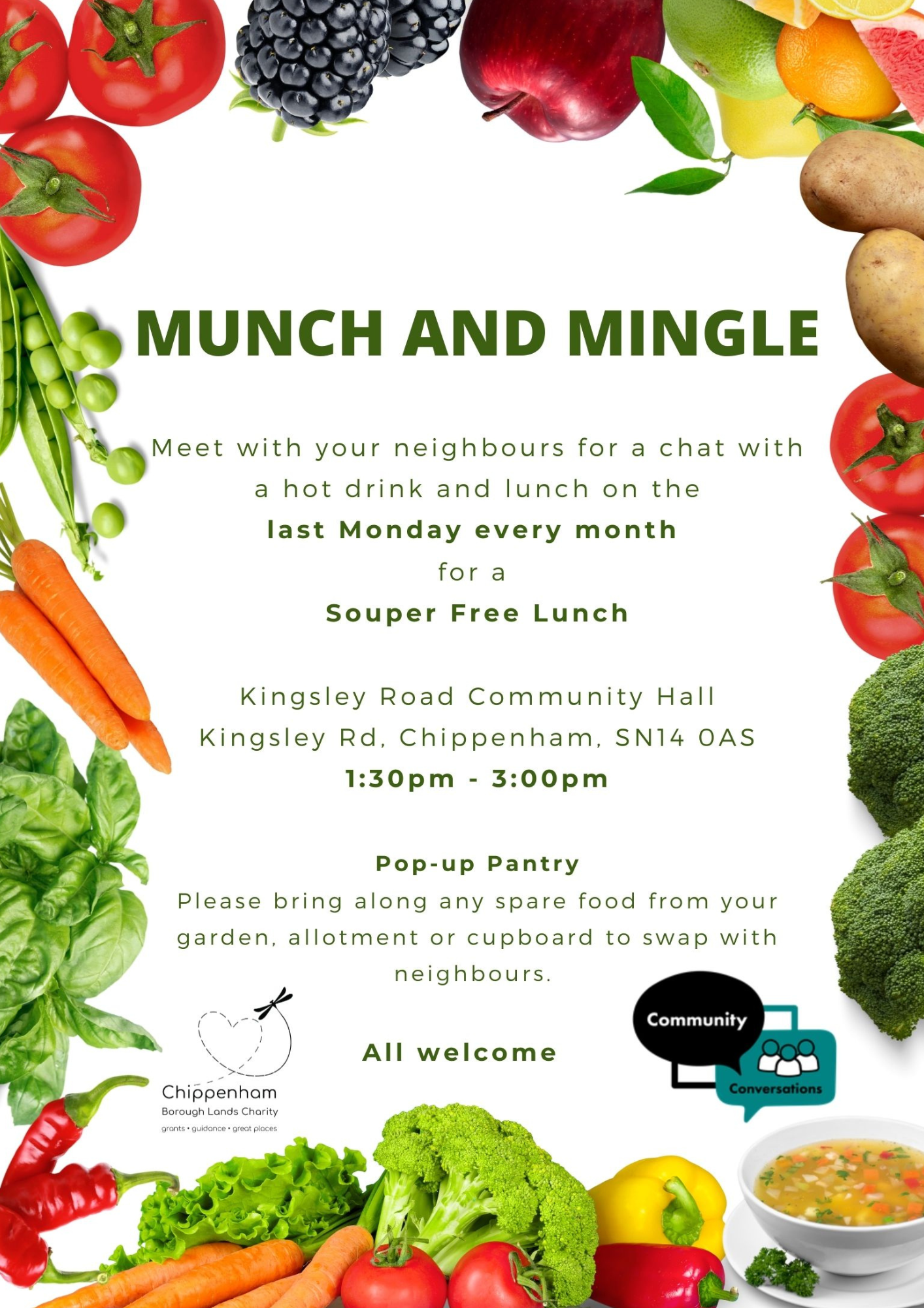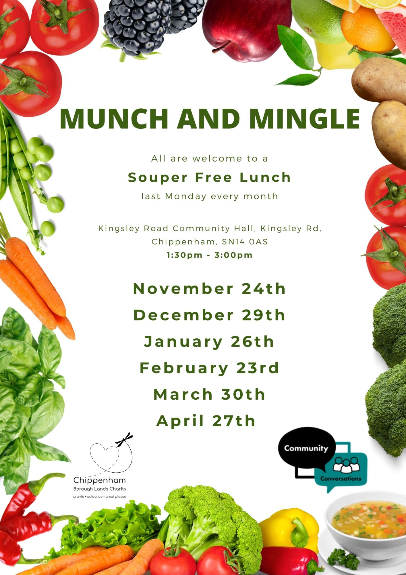 The next Munch & Mingle sessions will take place on Monday 23rd February, Monday 30th March, and Monday 27th April. If you haven’t been along yet, it’s well worth a visit. Go for the soup, stay for the conversation and leave feeling just a that little bit more connected.